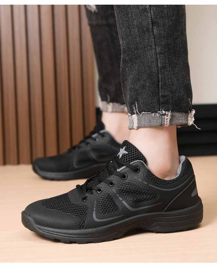網眼透氣便捷繫帶圓頭男鞋【黑色大網眼】+【黑色小網眼】各一雙(到手2雙,每雙均價549元!)
