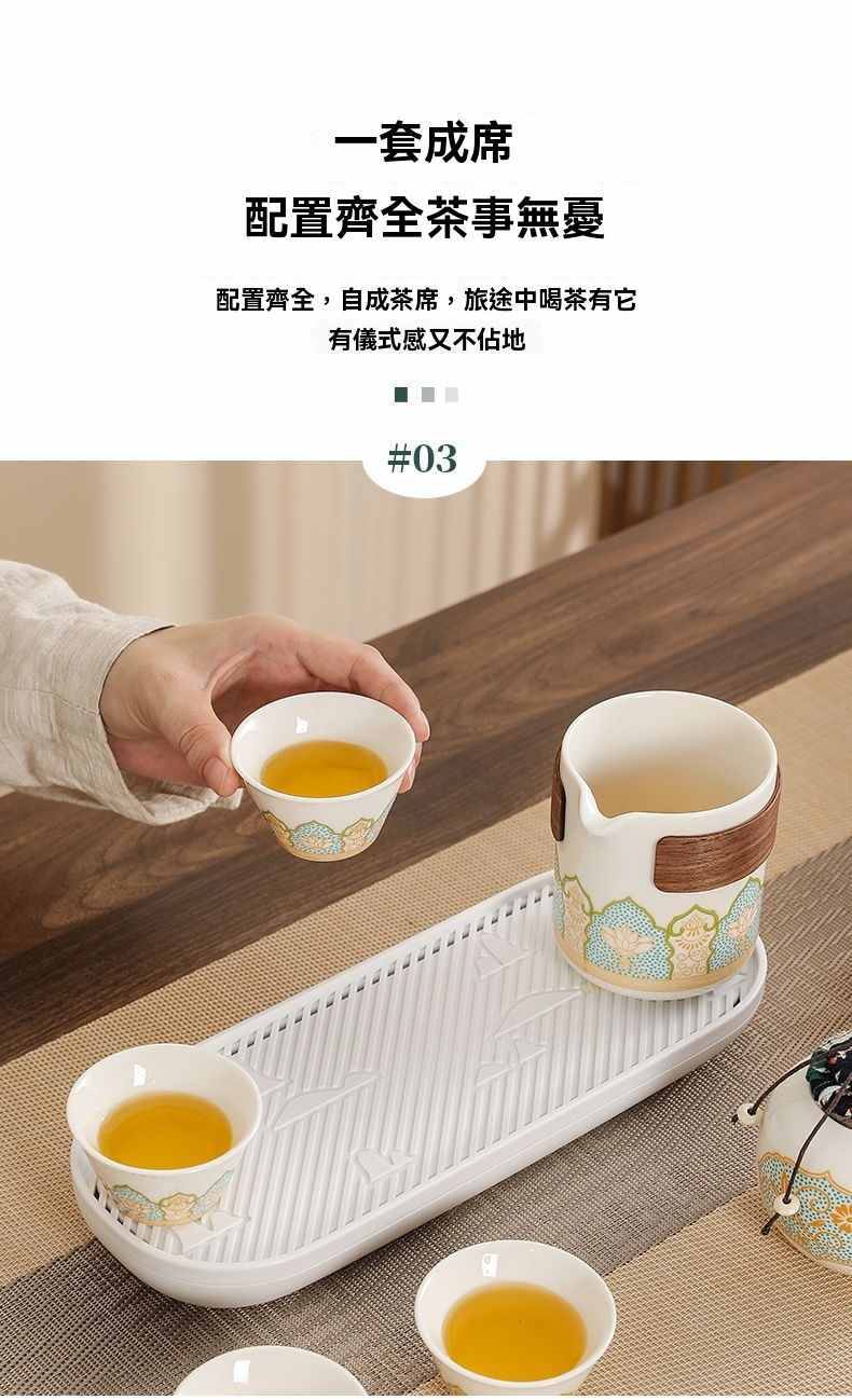 陶瓷套裝【玉白】一壺四杯+罐巾夾+橢圓包+盤一組