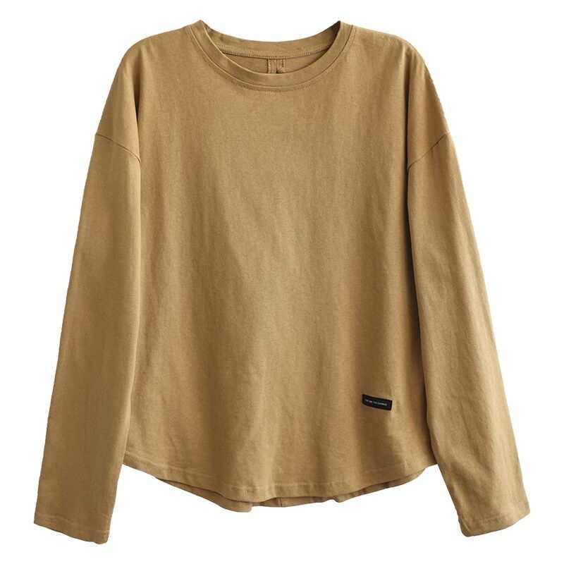 【全台免運!限時特惠買一送一!】早秋復古文藝純色圓領百搭長袖T恤