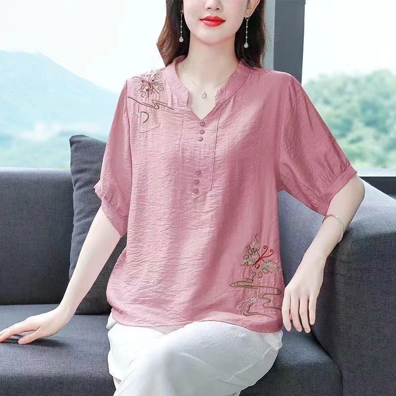 【買一送二!每件僅需333元!】寬鬆遮肚媽媽刺繡純色上衣