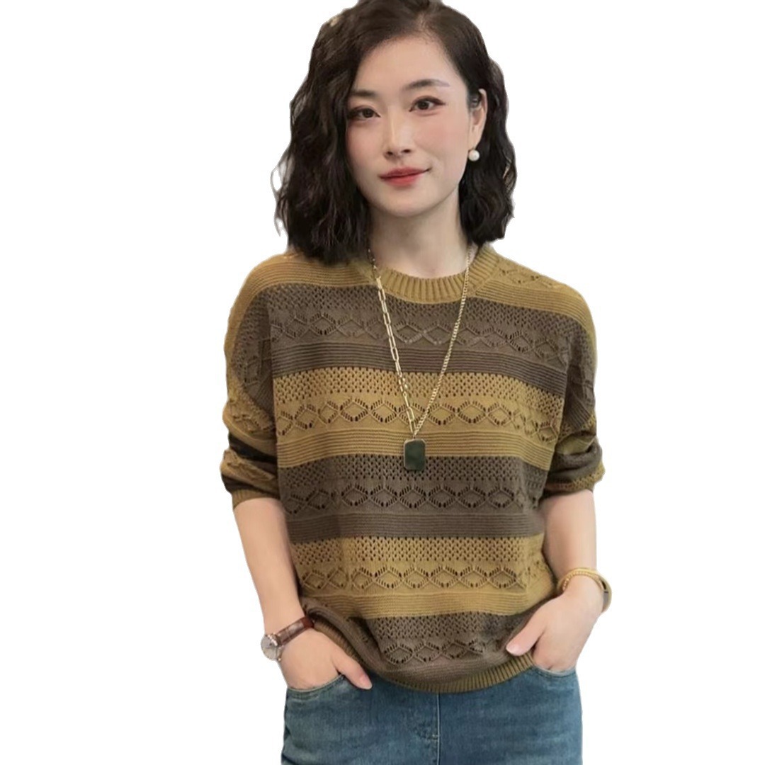 【法式經典優雅!限時買一送二!】潮流百搭寬鬆條紋秋冬女士針織衫
