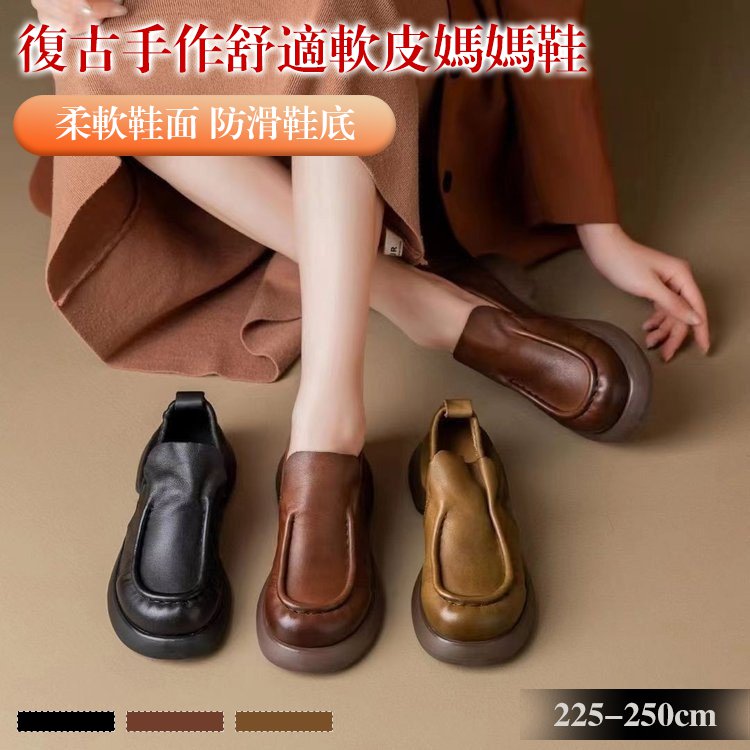 【廠家直銷!年終特惠買一送一!】復古手作舒適軟底媽媽鞋