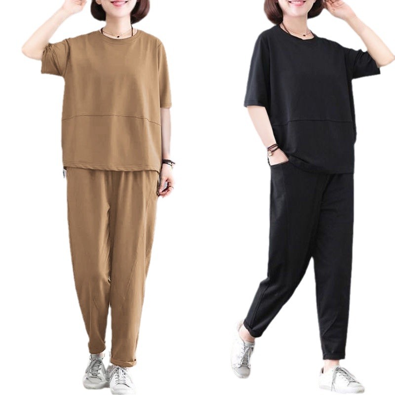 【舒適顯瘦!簡約寬鬆!】夏季女士氣質T恤長褲兩件套