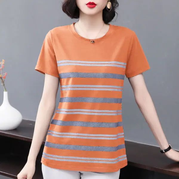 【透氣親膚!限時買一送一!】中年媽媽中長款條紋上衣