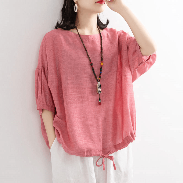 【寬鬆遮肉!限時買一送一!】復古棉麻女士蝙蝠衫