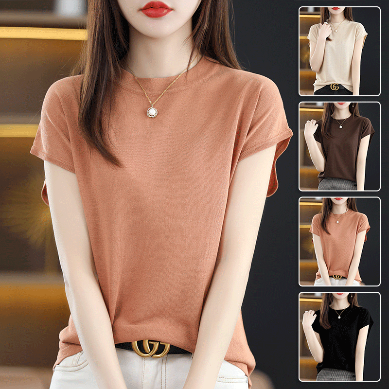 【柔軟細膩!限時買一送一!】韓版天絲亞麻半高領短袖女T恤