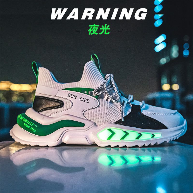 【酷炫夜光】飛織網面厚底增高運動男鞋