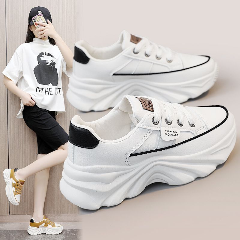 【修飾小腿線條!】女士皮面增高厚底板鞋