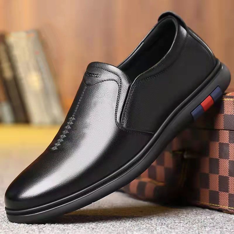 【休閒!駕車!旅遊!】男士彈力鞋口軟皮軟面一鍵繫帶韓版皮鞋