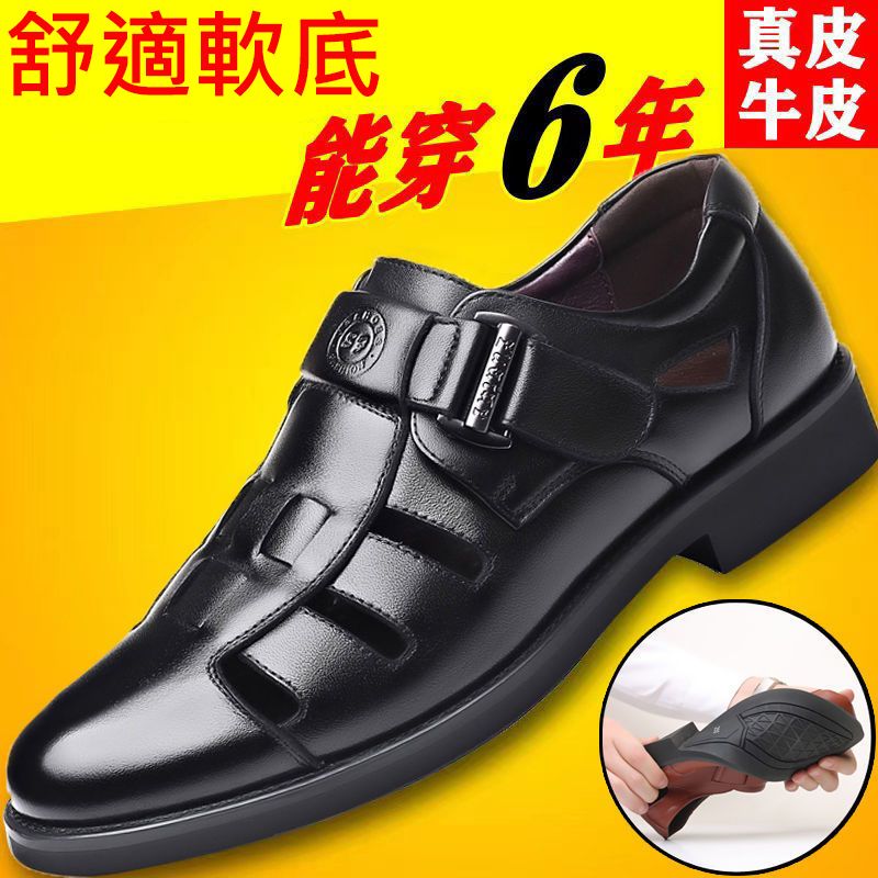 【100%牛皮】真皮超軟防滑透氣中老年男士涼鞋