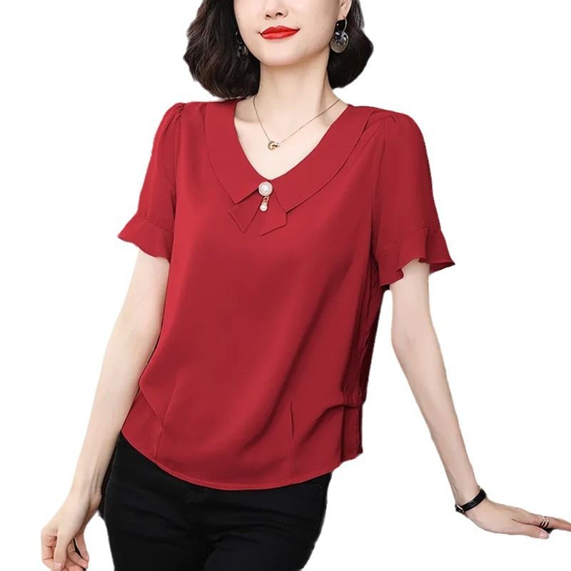 【特惠買一送一!每件僅需549元!】荷葉袖氣質減齡中年媽媽上衣