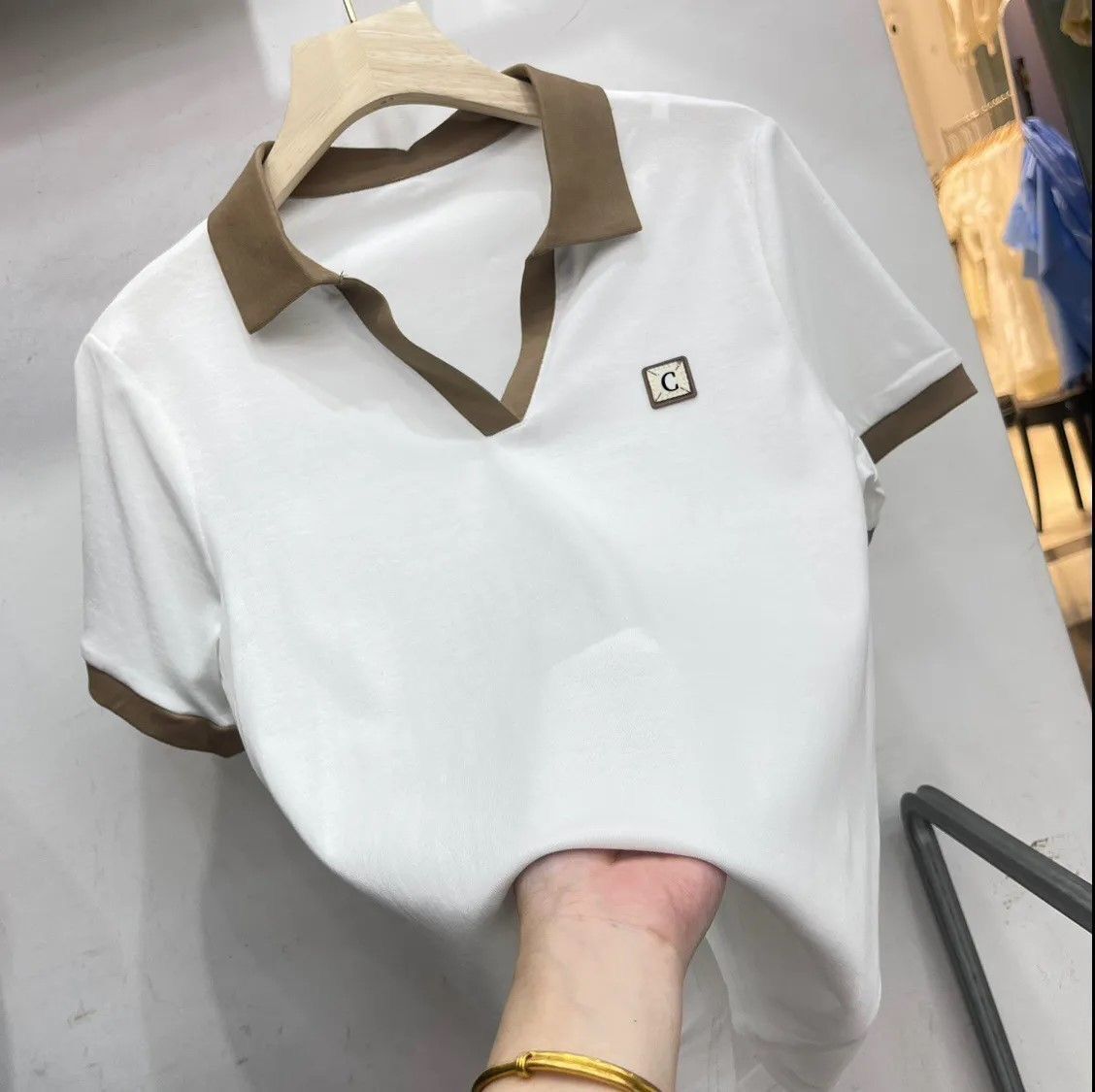 簡約挺闊媽媽polo衫【買一送一】【咖色】+【白色】各一件(每件499元)