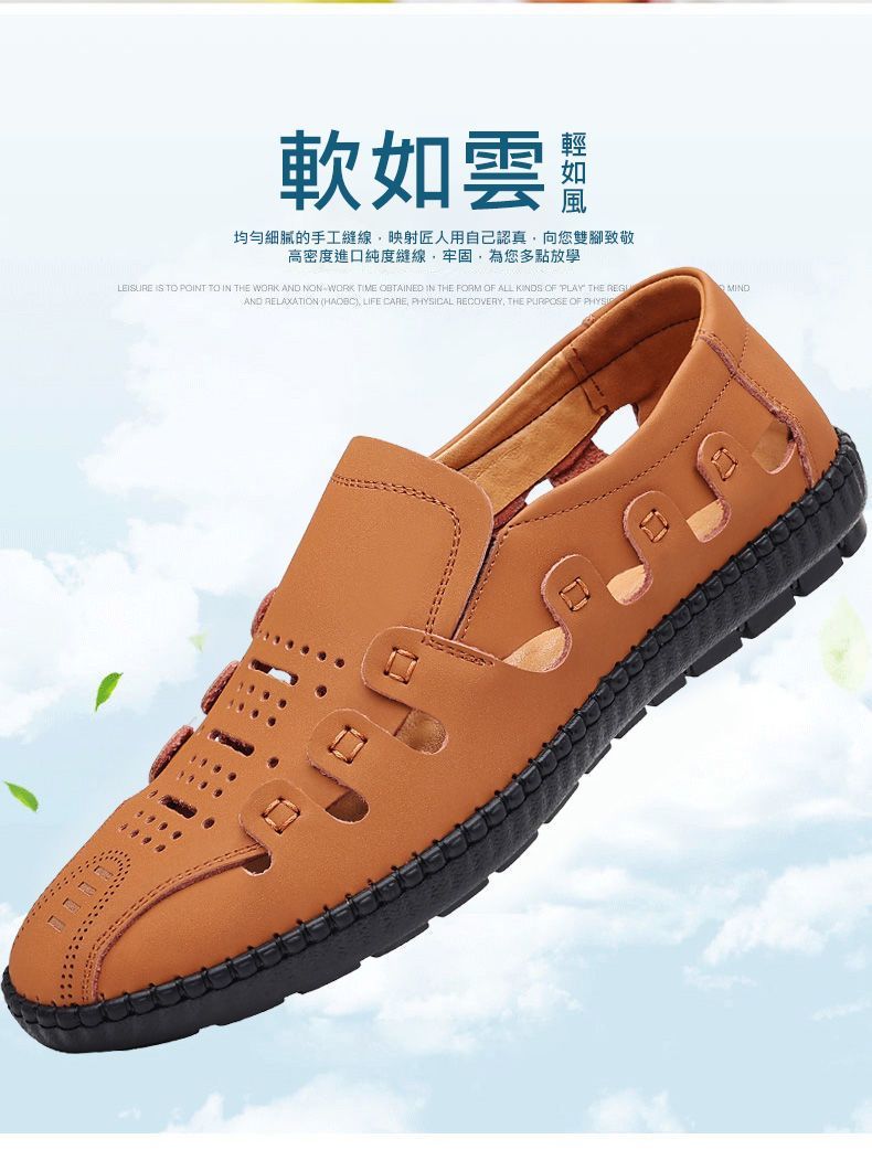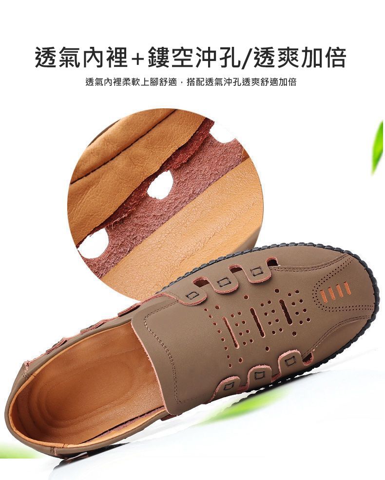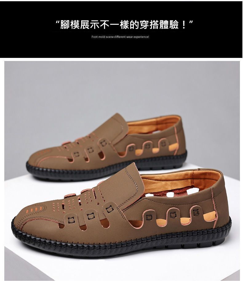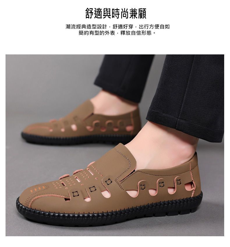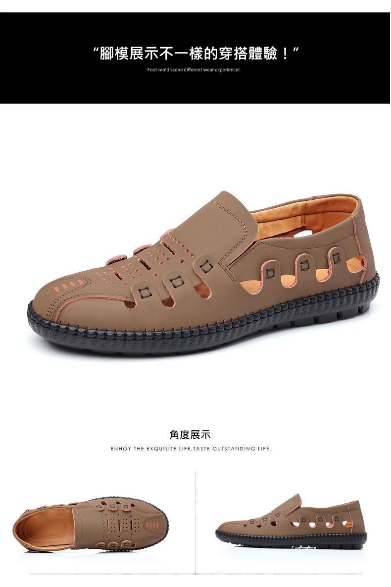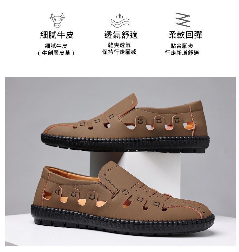 【頭層牛皮!】夏季鏤空真皮男鞋【卡其色】+【黑色】各一雙(優惠400)