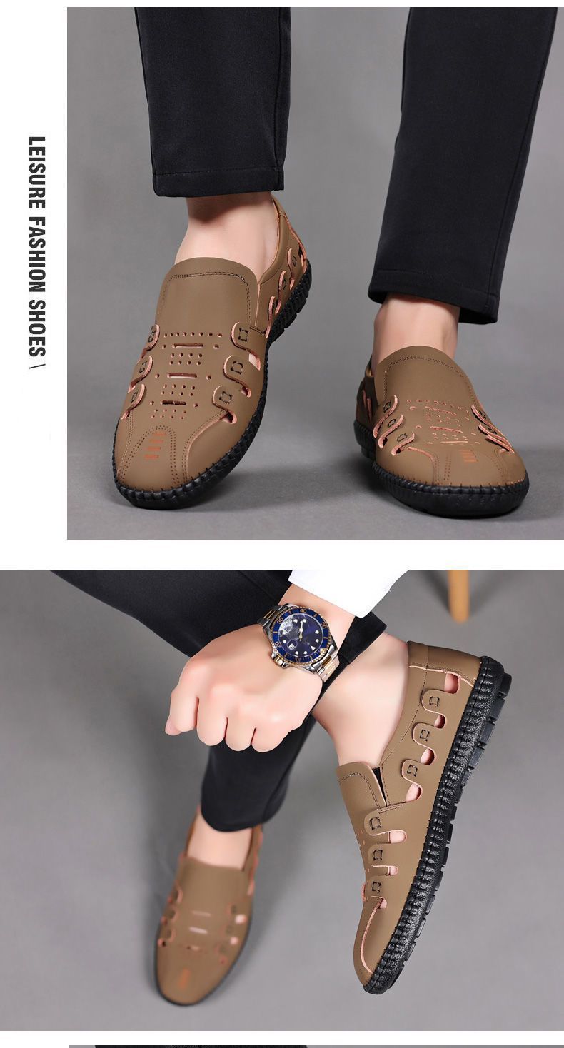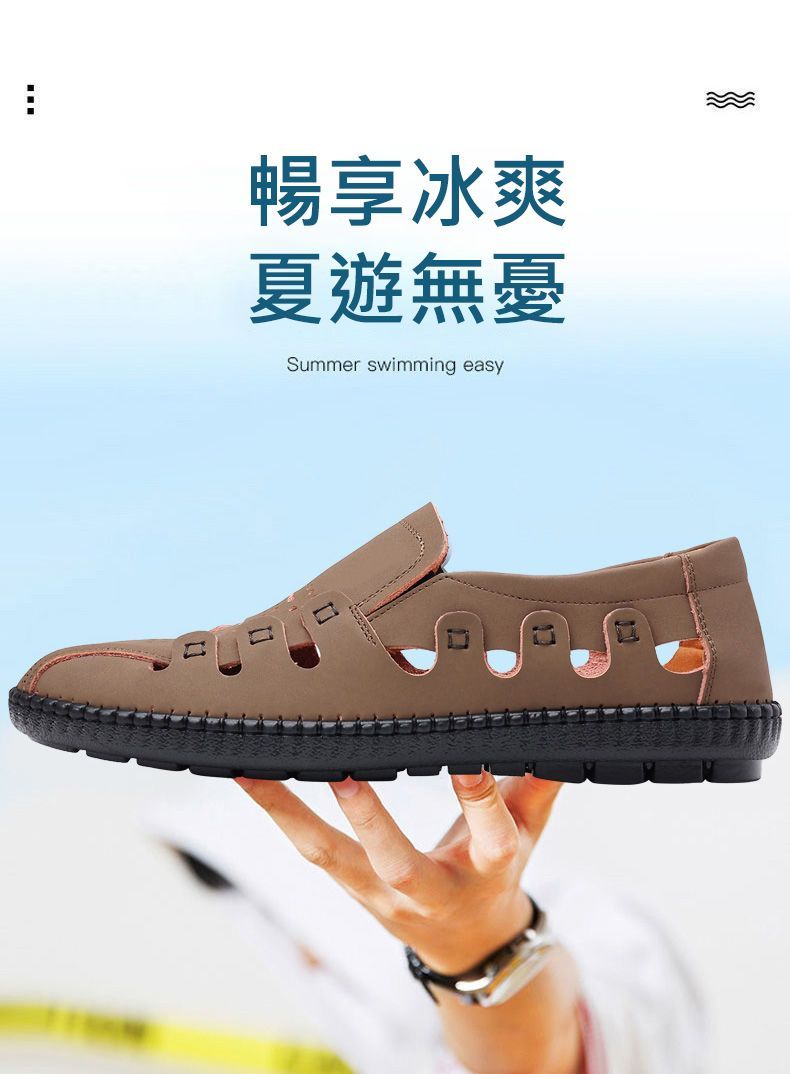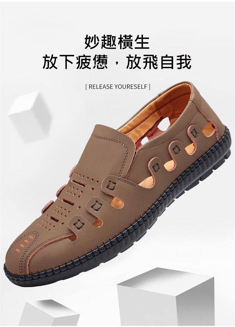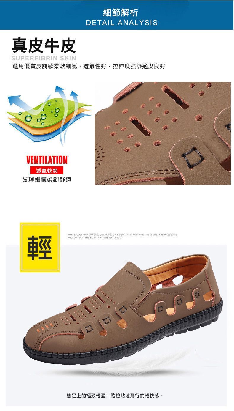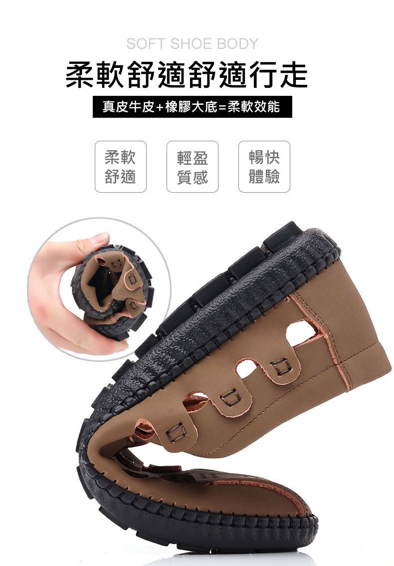 【頭層牛皮!】夏季鏤空真皮男鞋【卡其色】+【黑色】各一雙(優惠400)