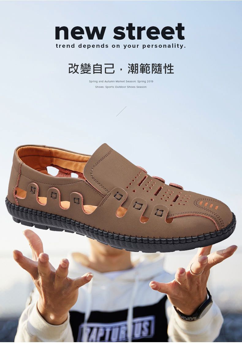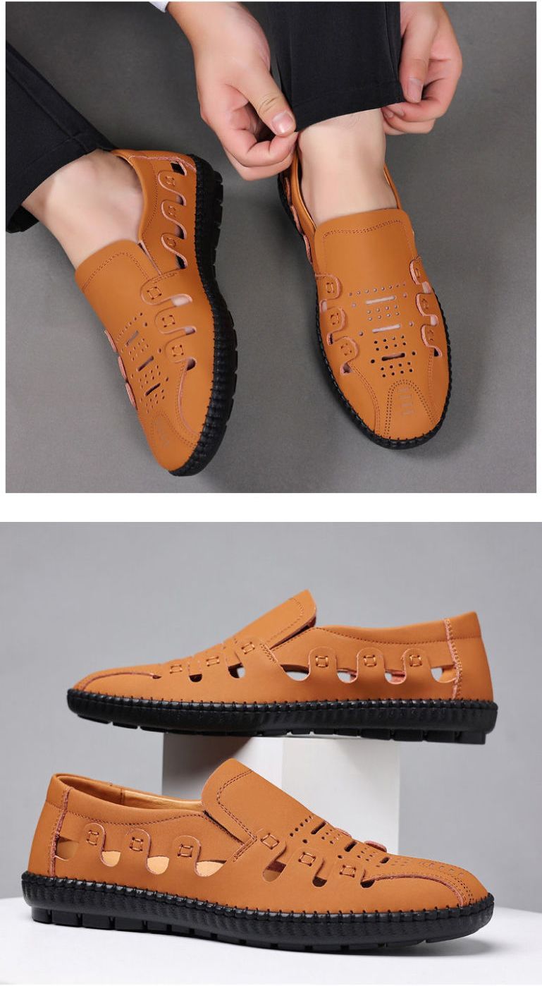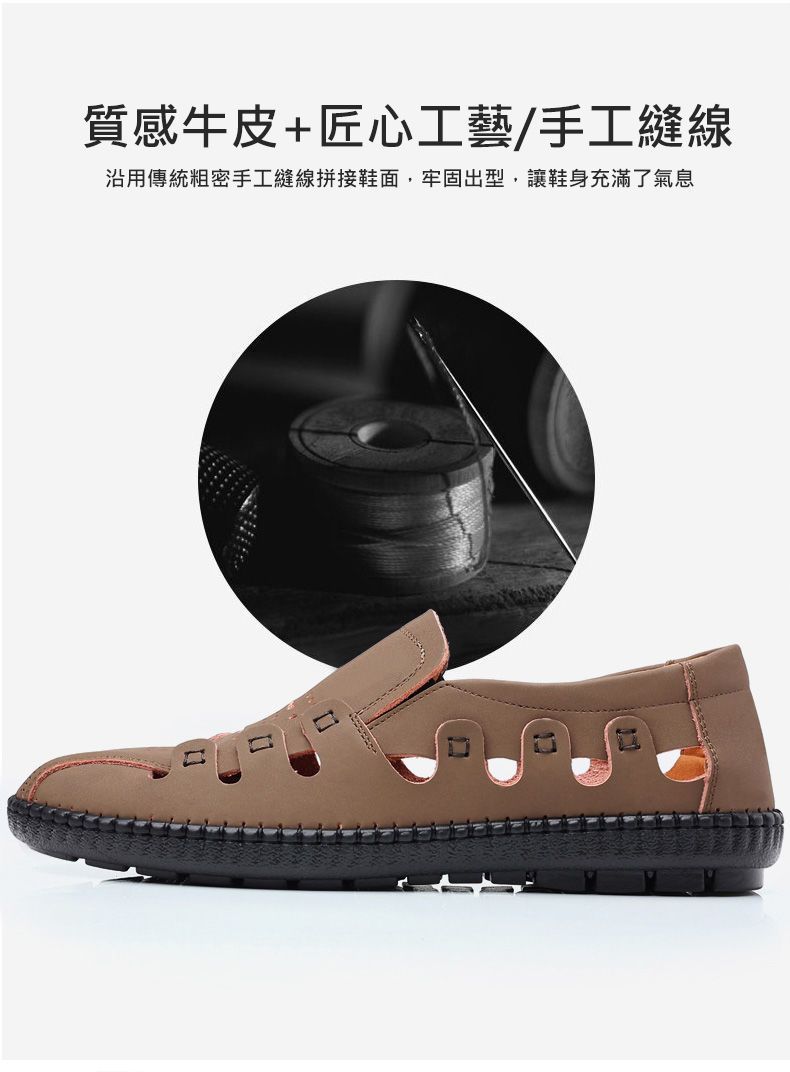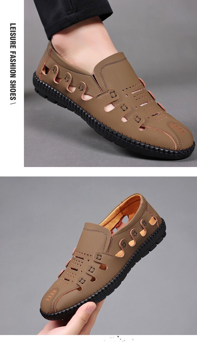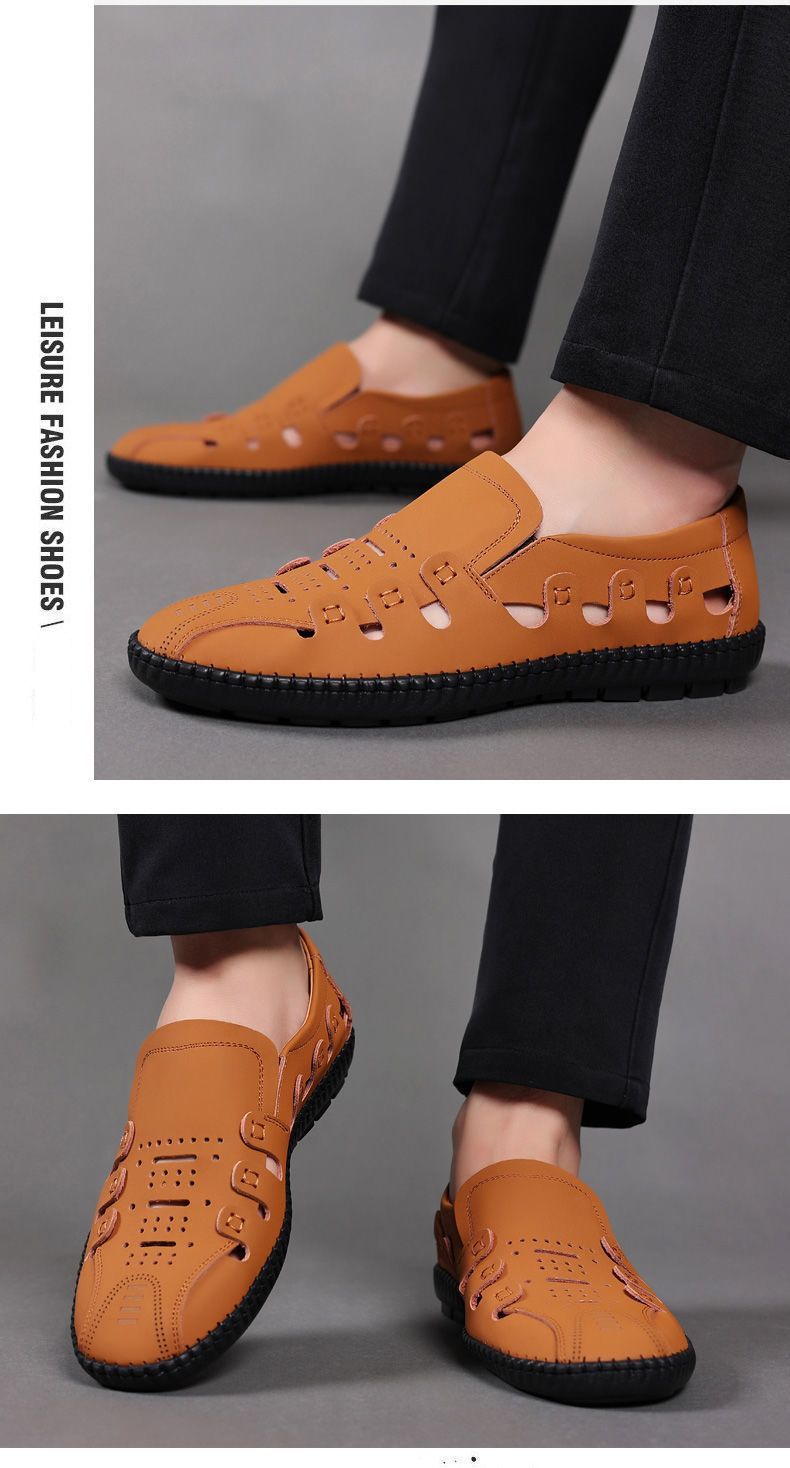 【頭層牛皮!】夏季鏤空真皮男鞋【卡其色】+【黑色】各一雙(優惠400)
