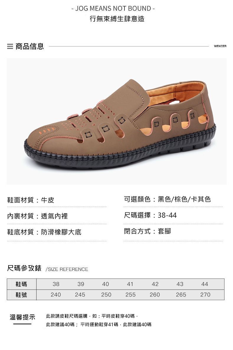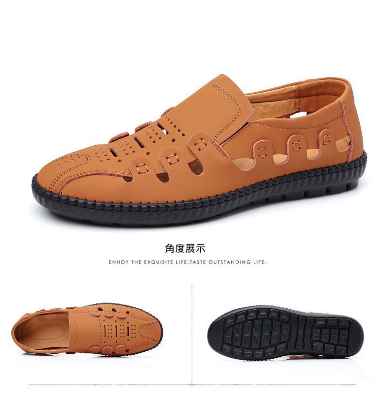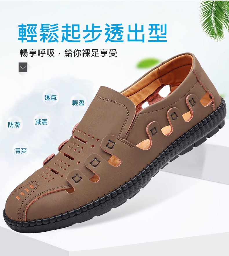 【頭層牛皮!】夏季鏤空真皮男鞋【卡其色】一雙