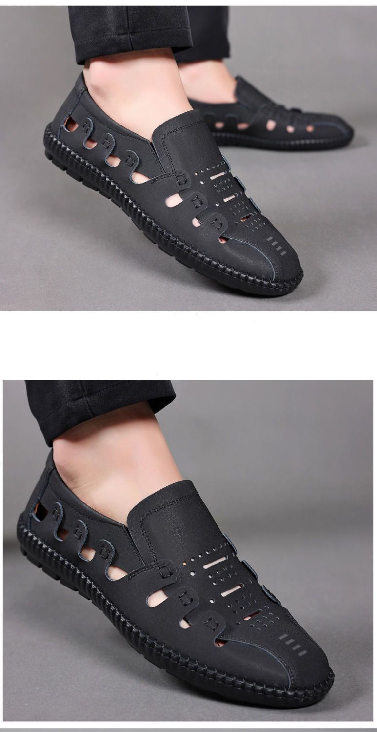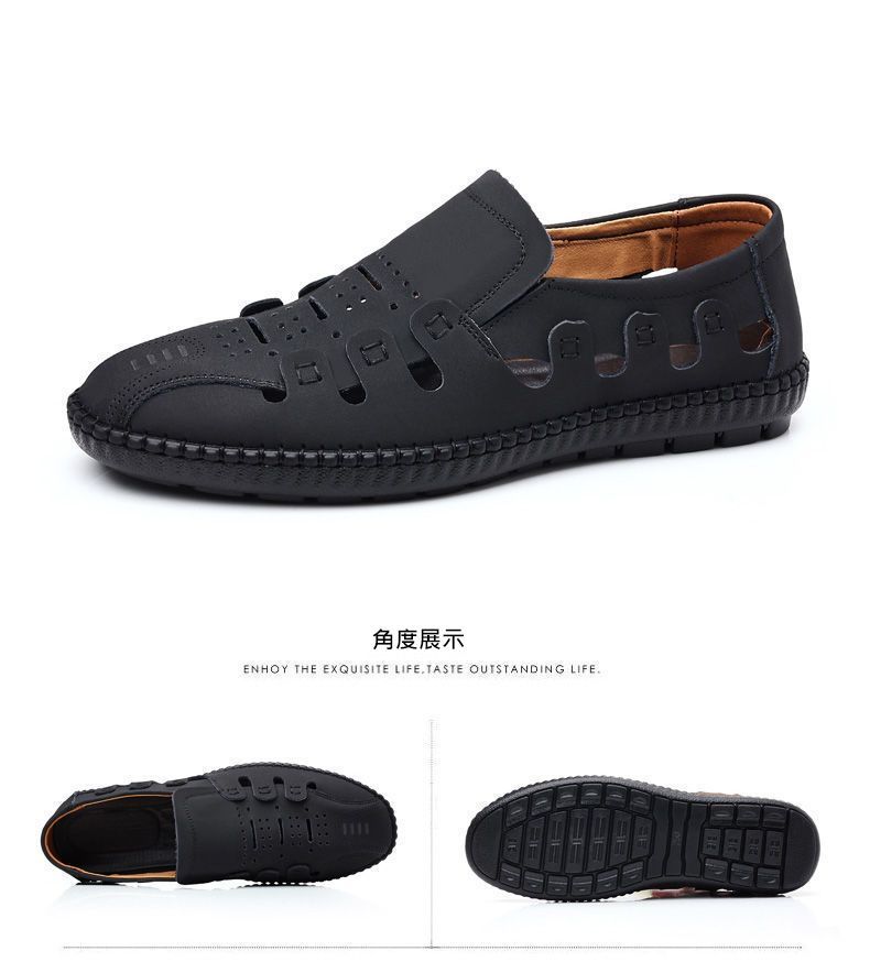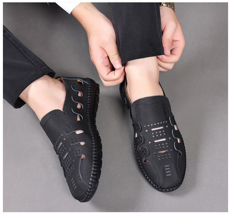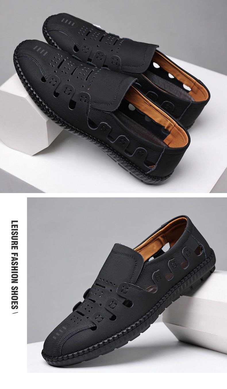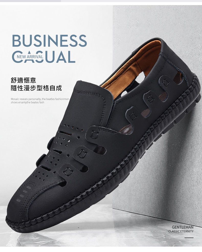 【頭層牛皮!】夏季鏤空真皮男鞋【黑色】一雙