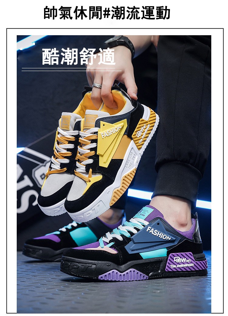 【潮酷舒適!】新款厚底運動休閒男鞋【紫色】+【黃色】各一雙(優惠400)