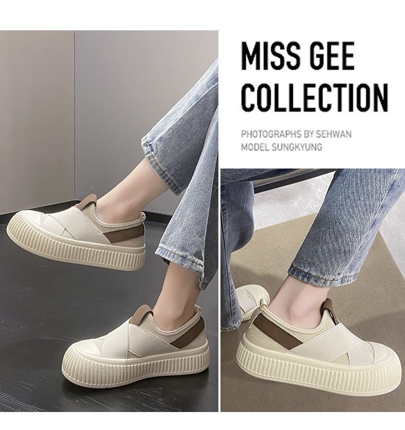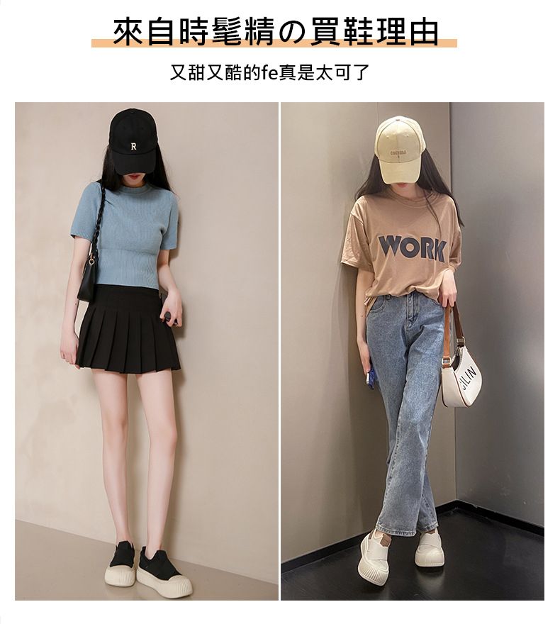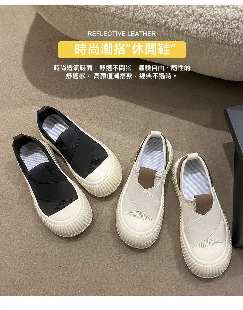 增高舒適透氣百搭休閒女鞋【黑色】+【米色】各一雙(優惠400)