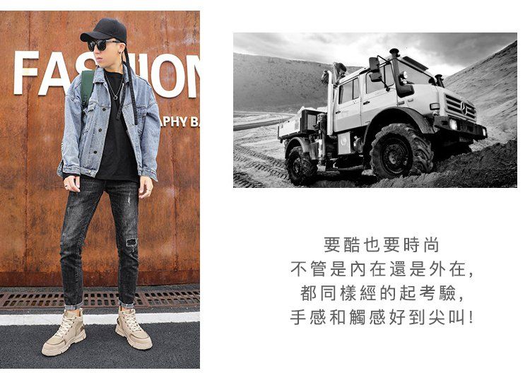 耐磨輕便百搭男士高幫馬丁靴【買一送一】卡其色+黑色各一雙(到手兩雙!每雙649元!)