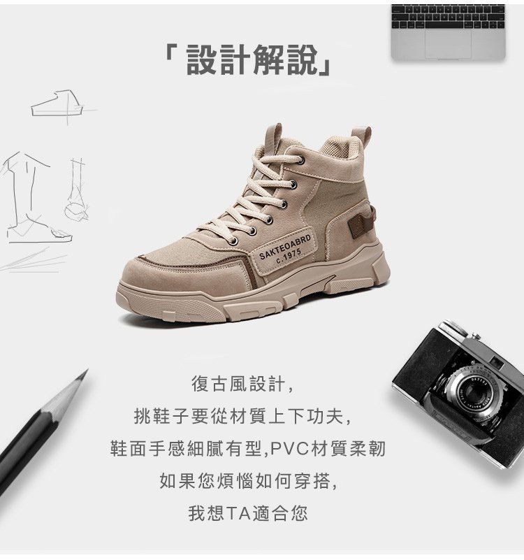 耐磨輕便百搭男士高幫馬丁靴【買一送一】卡其色兩雙(到手兩雙!每雙649元!)