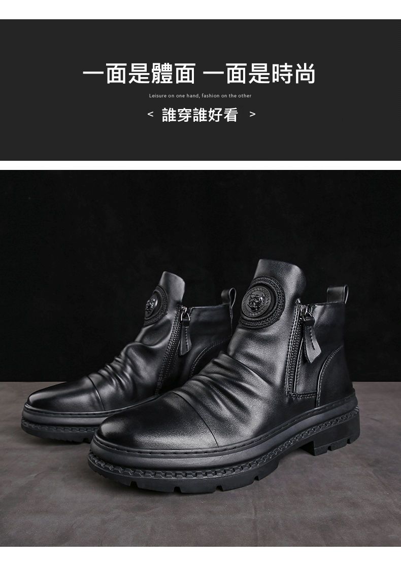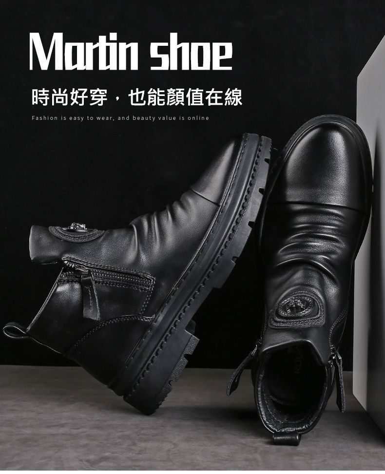 【秒變高富帥】秋冬新款厚底增高英倫百搭男靴兩雙(優惠400)