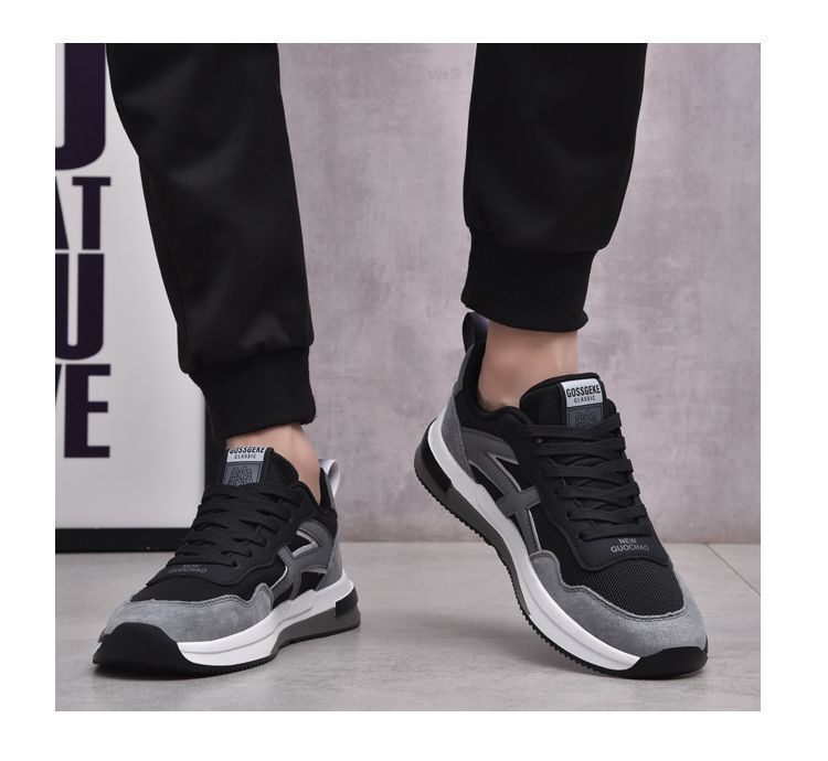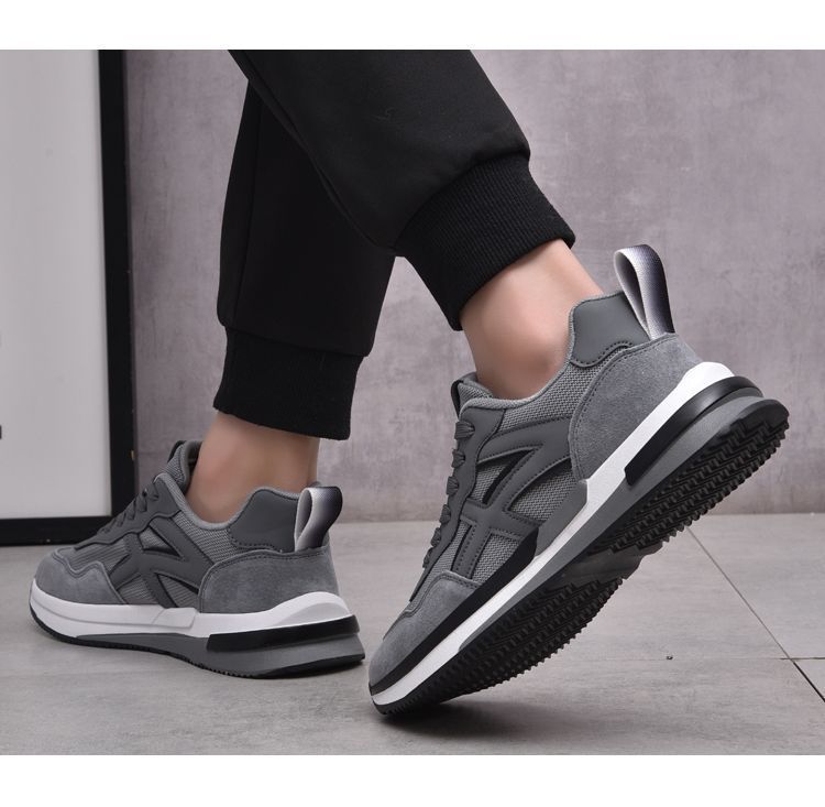 【不悶腳!】圓頭皮網拼接男運動鞋【灰色】+【黑色】各一雙(優惠400)