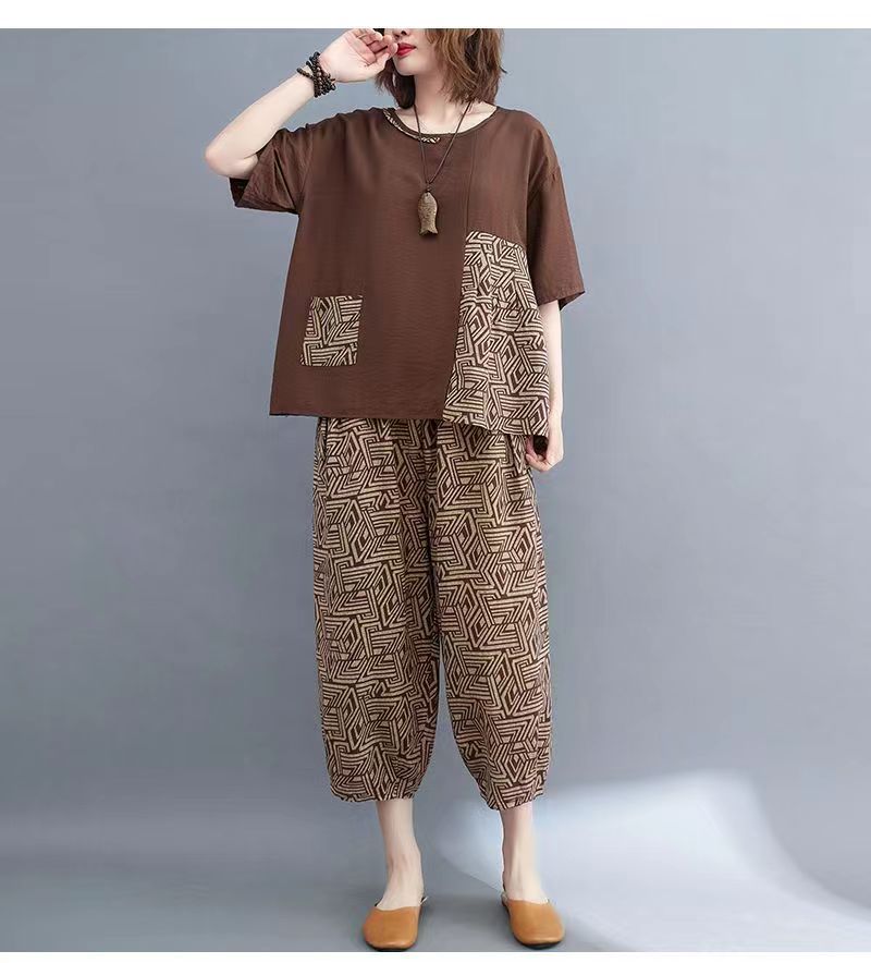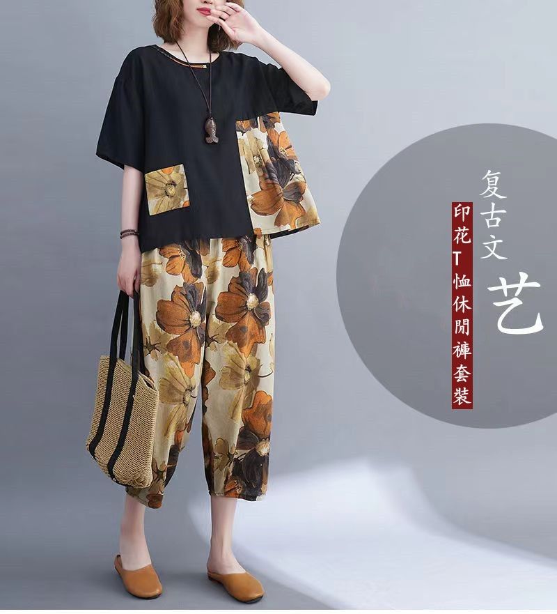 民族風純棉兩件套【咖啡色】+【黑色】各一組(優惠400,每套僅798元)