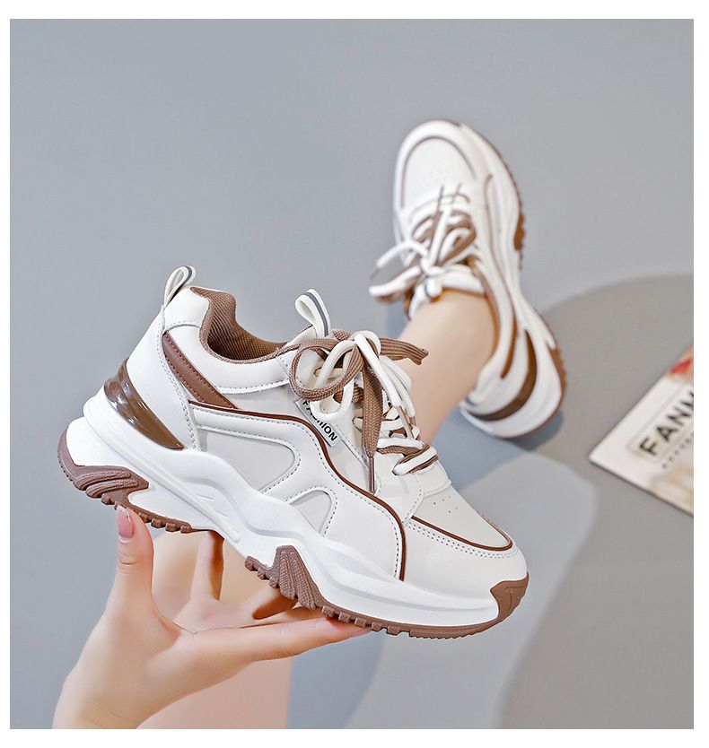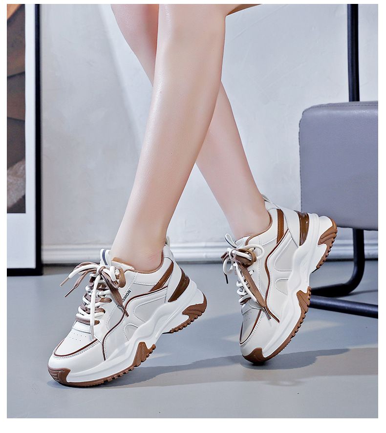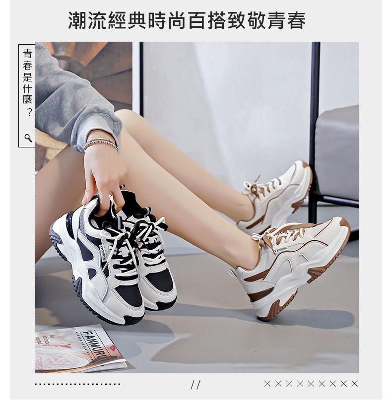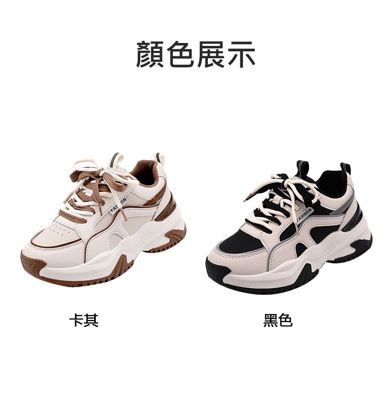 【致敬青春!】時尚百搭厚底增高女鞋【卡其色皮面】+【黑色皮面】各一雙(優惠400)