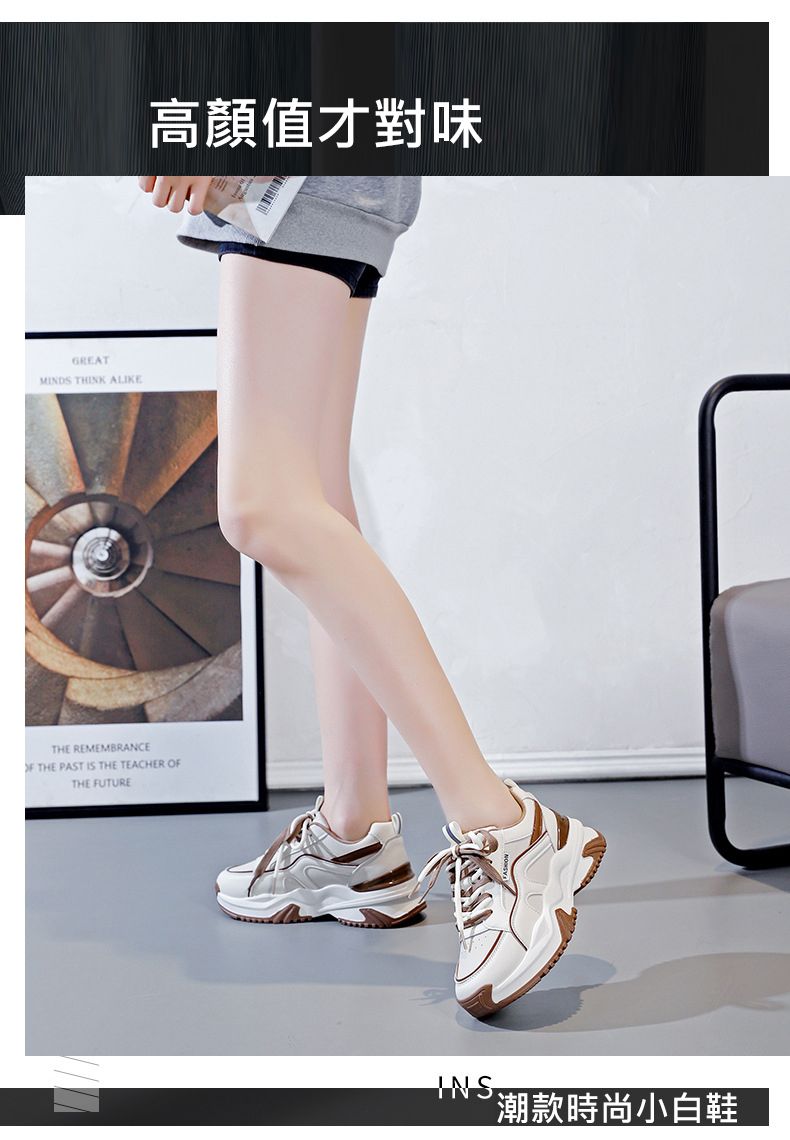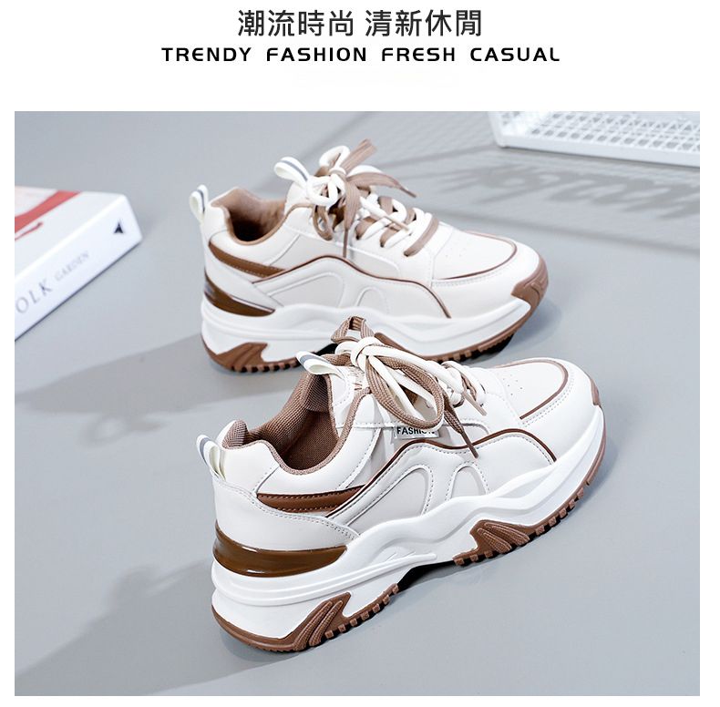 【致敬青春!】時尚百搭厚底增高女鞋【卡其色皮面】一雙