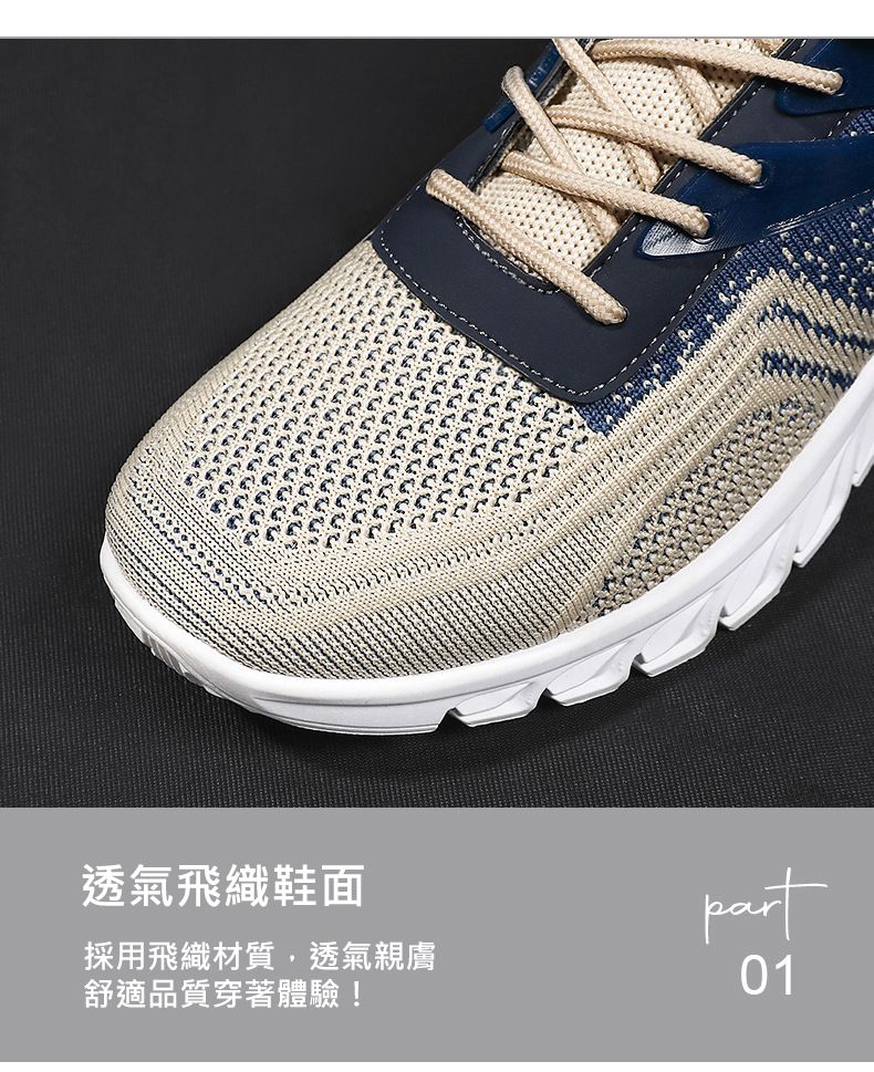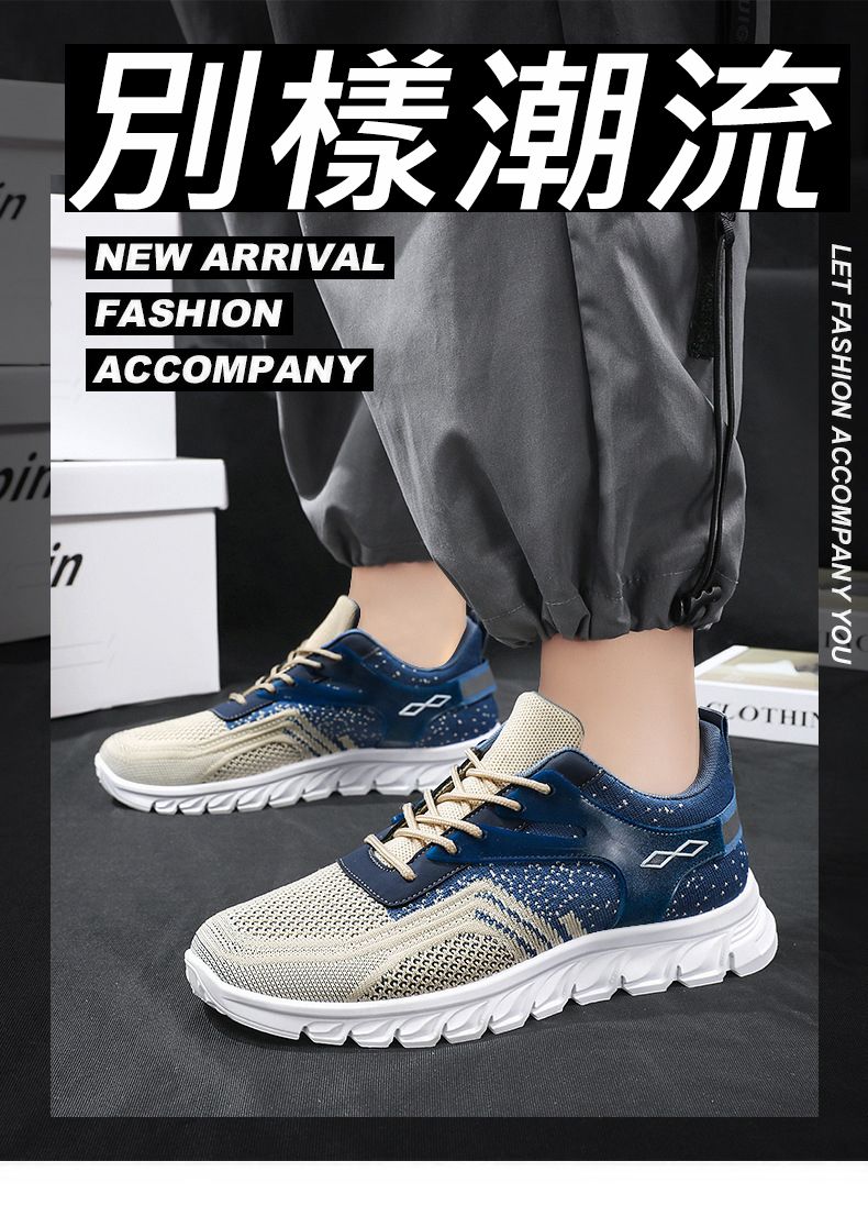 【雨天濕地不打滑!】男士軟底透氣飛織運動鞋【米藍色】+【黑色】各一雙(優惠400)