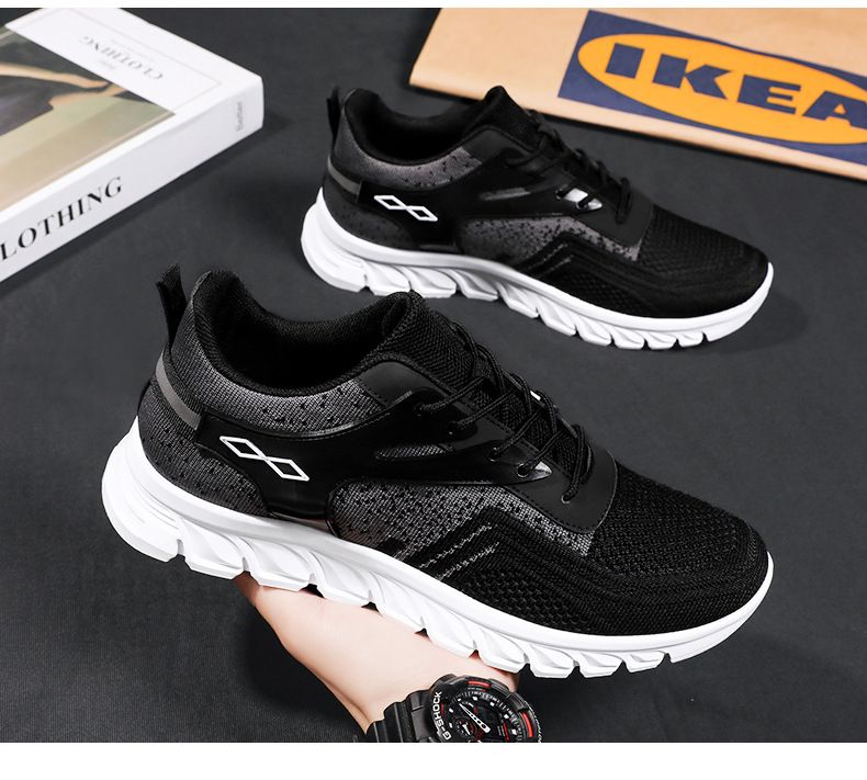 【雨天濕地不打滑!】男士軟底透氣飛織運動鞋【白色】+【黑色】各一雙(優惠400)