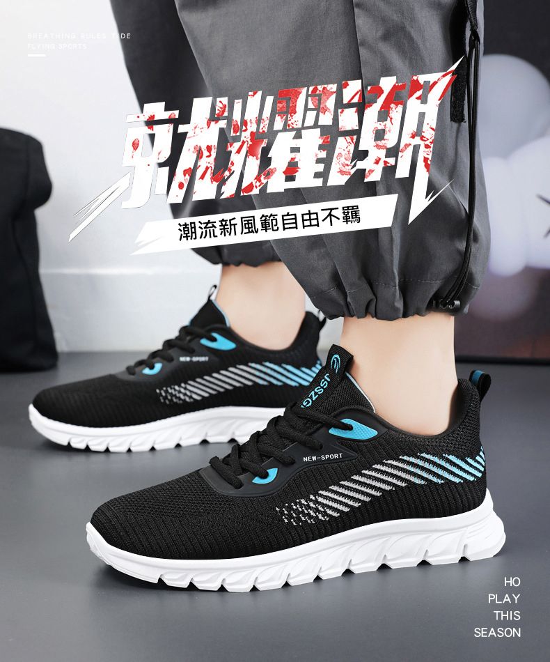 【自由不羈!】舒適透氣耐磨男跑鞋【黑藍色】一雙