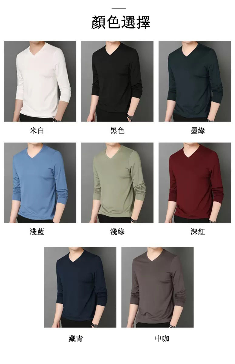 V領長袖T恤【買一送二】藏青+墨綠+白色各一件(到手3件,每件333元!)