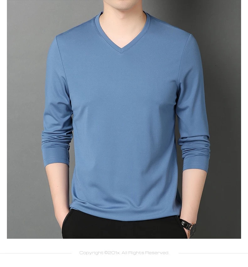 V領長袖T恤【買一送二】藏青+淺藍+酒紅各一件(到手3件,每件333元!)