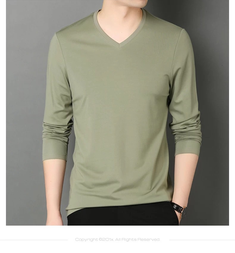 V領長袖T恤【買一送二】黑色+墨綠+淺綠各一件(到手3件,每件333元!)