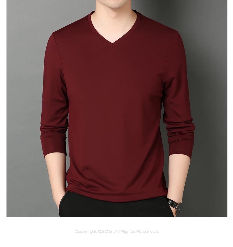 V領長袖T恤【買一送二】墨綠+白色+酒紅各一件(到手3件,每件333元!)