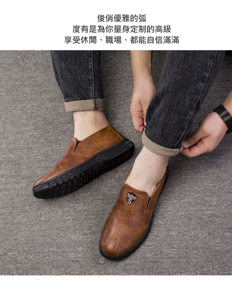 英倫時尚頭層牛皮鞋【買一送一】【棕色】兩雙