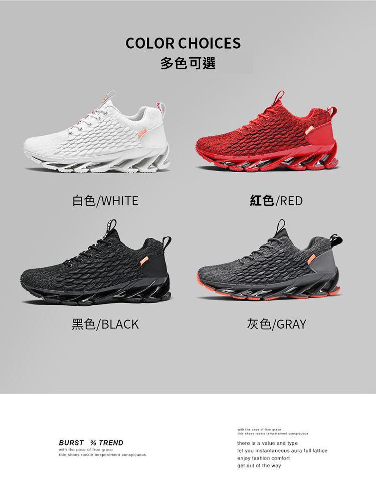 休閒透氣刀鋒鞋【灰色】一雙