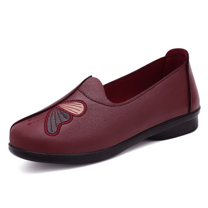 【蝴蝶繡花】柔軟舒適淺口女鞋【紅色】+【咖色】各一雙(優惠400)