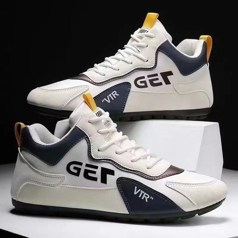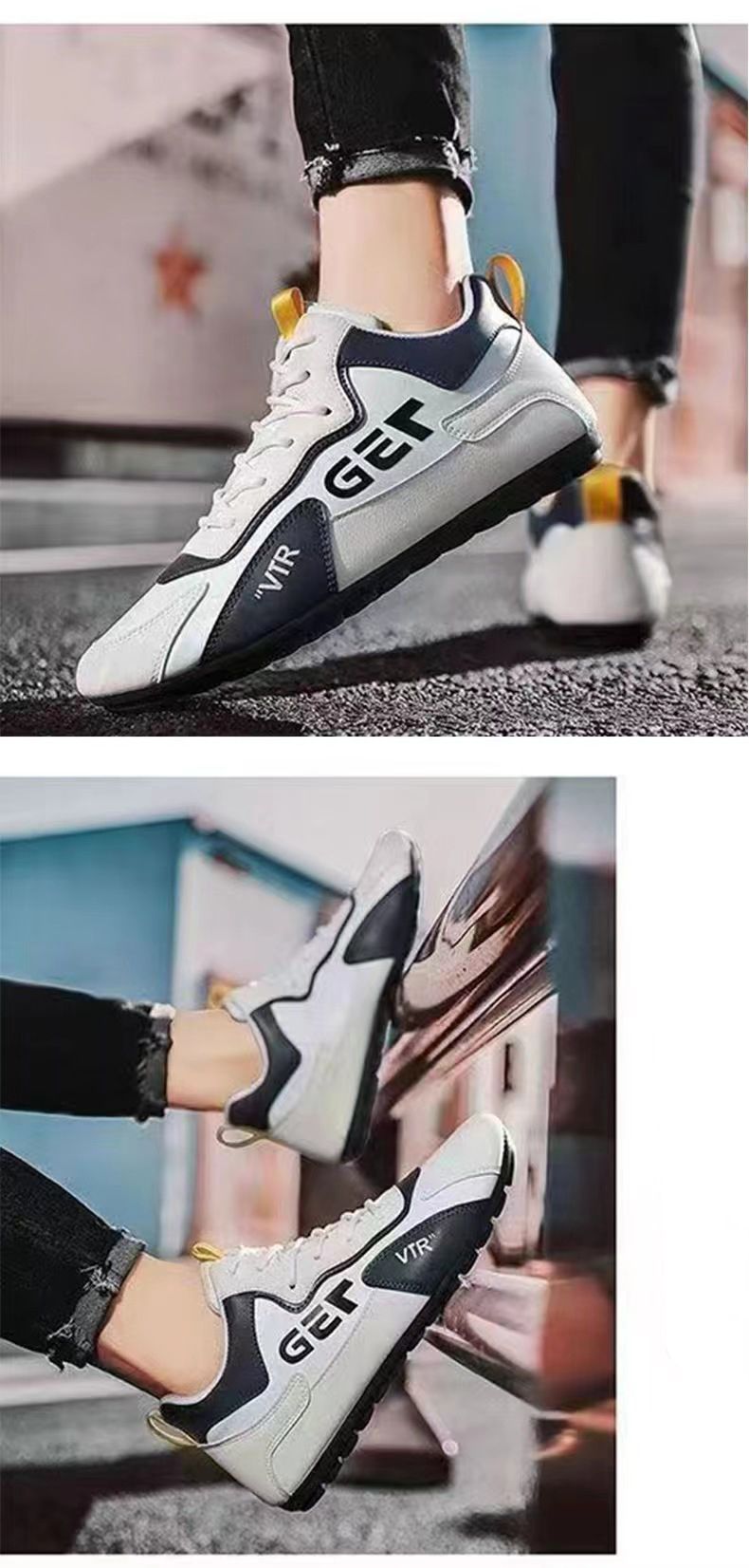 【透氣百搭】春季韓版復古潮流皮面防滑男士跑鞋【白色】一雙