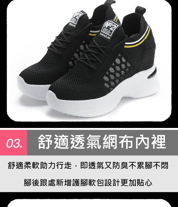 【收貨不值退全款!】透氣顯瘦增高女鞋【白色】+【黑色】各一雙(優惠400)