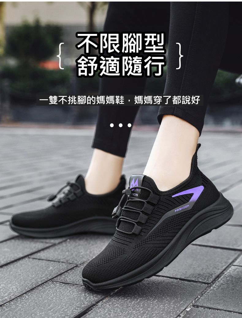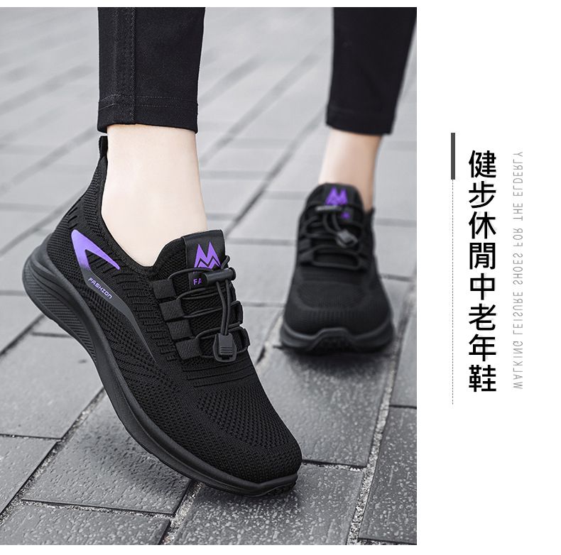 透氣休閒中老年媽媽鞋【買一送一】【黑色】兩雙