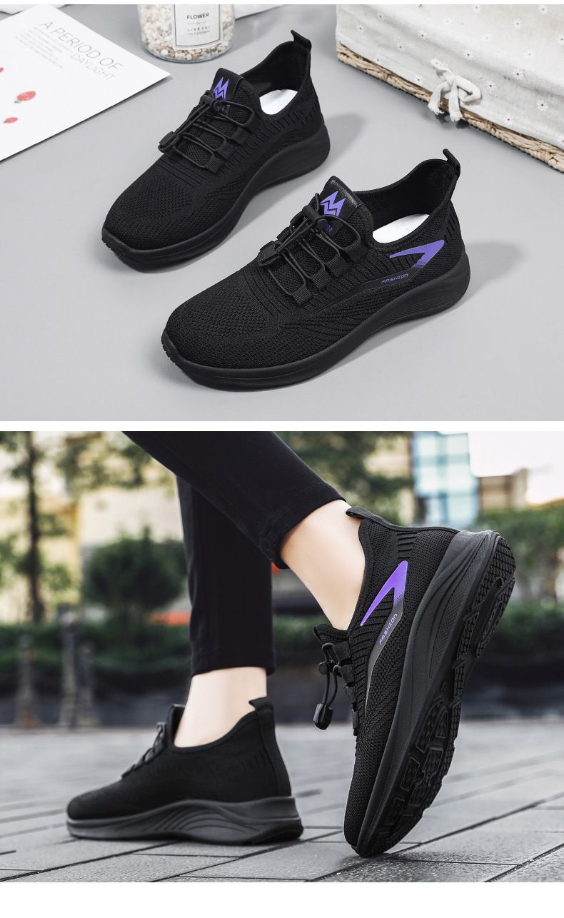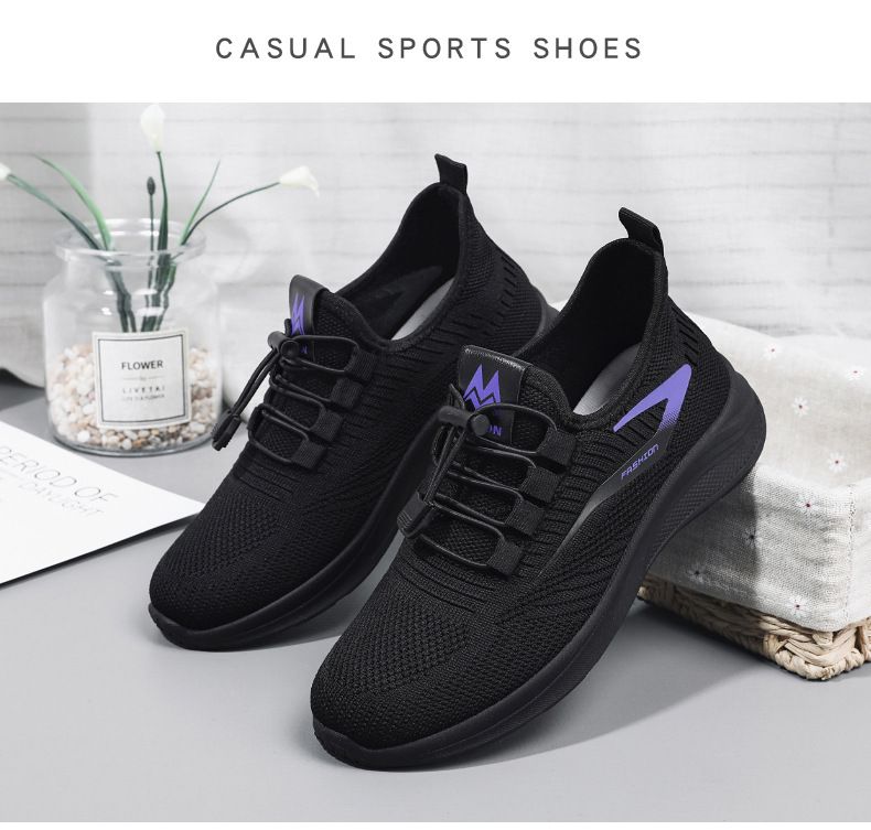 透氣休閒中老年媽媽鞋【買一送一】【黑色】+【粉色】各一雙