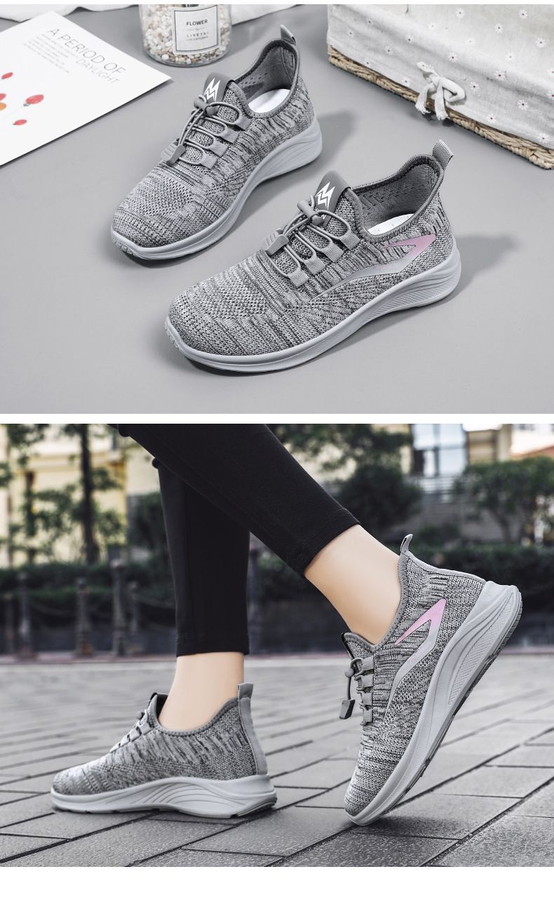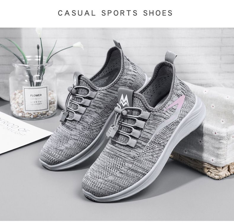 透氣休閒中老年媽媽鞋【買一送一】【灰色】+【粉色】各一雙