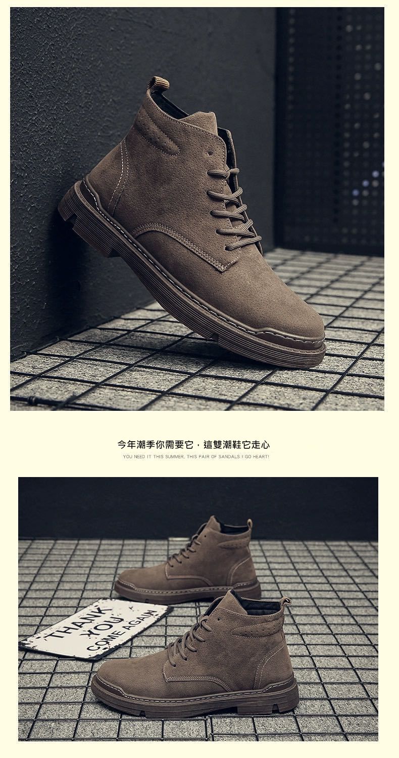 【新款大促】男士高幫潮流軟底百搭工裝鞋【棕色】+【黑色】各一雙(優惠400)