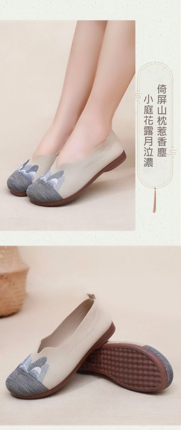 【細膩山水繡花】中老年媽媽鞋【咖色】+【灰色】各一雙(優惠400)