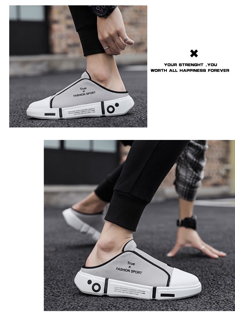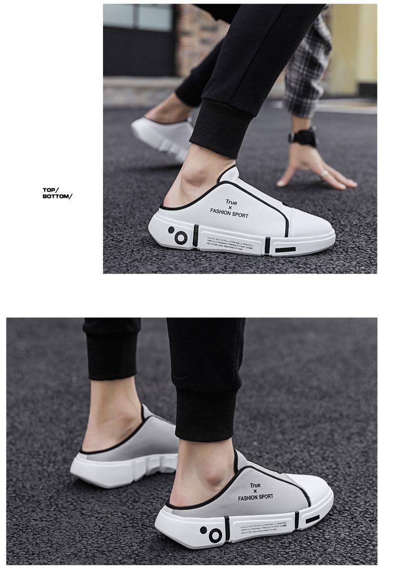 新款透氣懶人休閒一腳蹬半拖鞋【白色】+【灰色】各一雙(優惠400)
