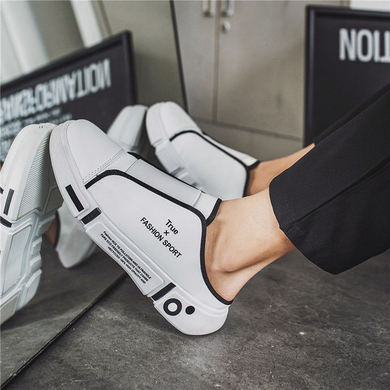 新款透氣懶人休閒一腳蹬半拖鞋【白色】一雙