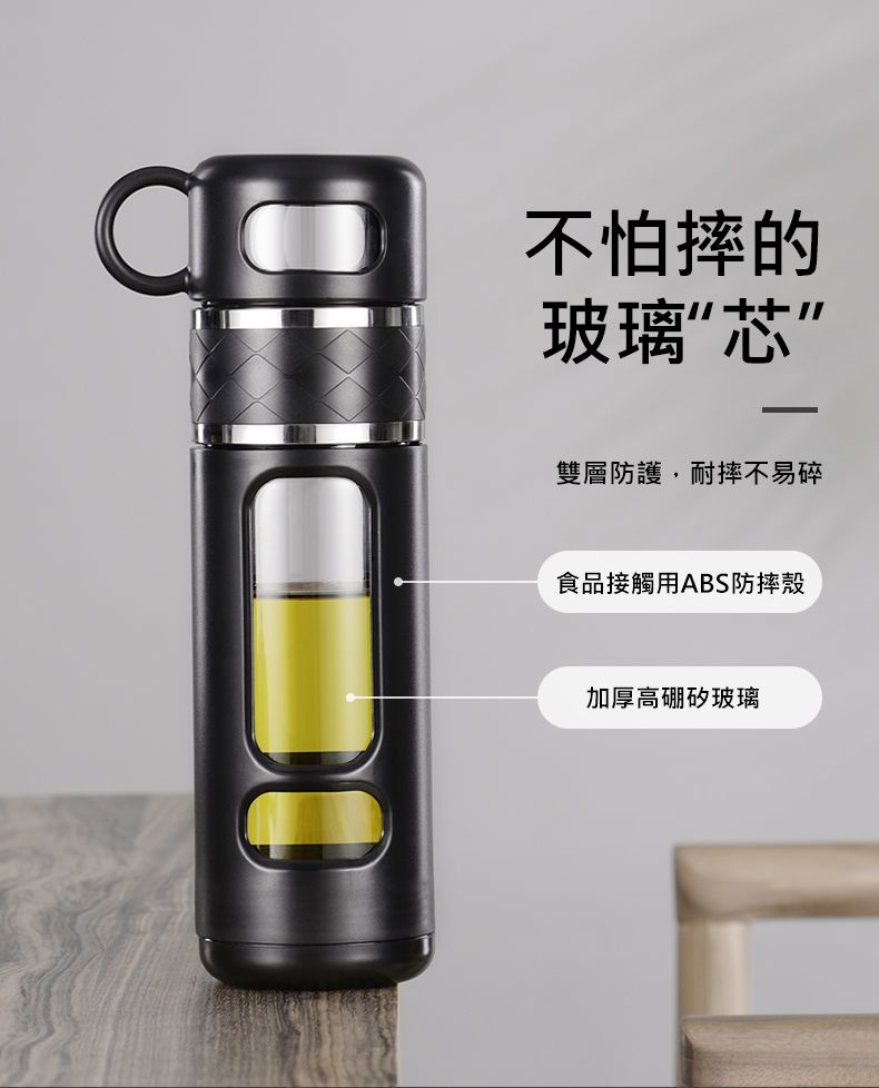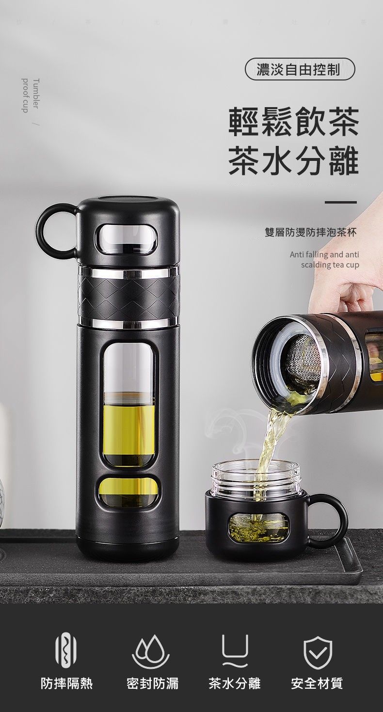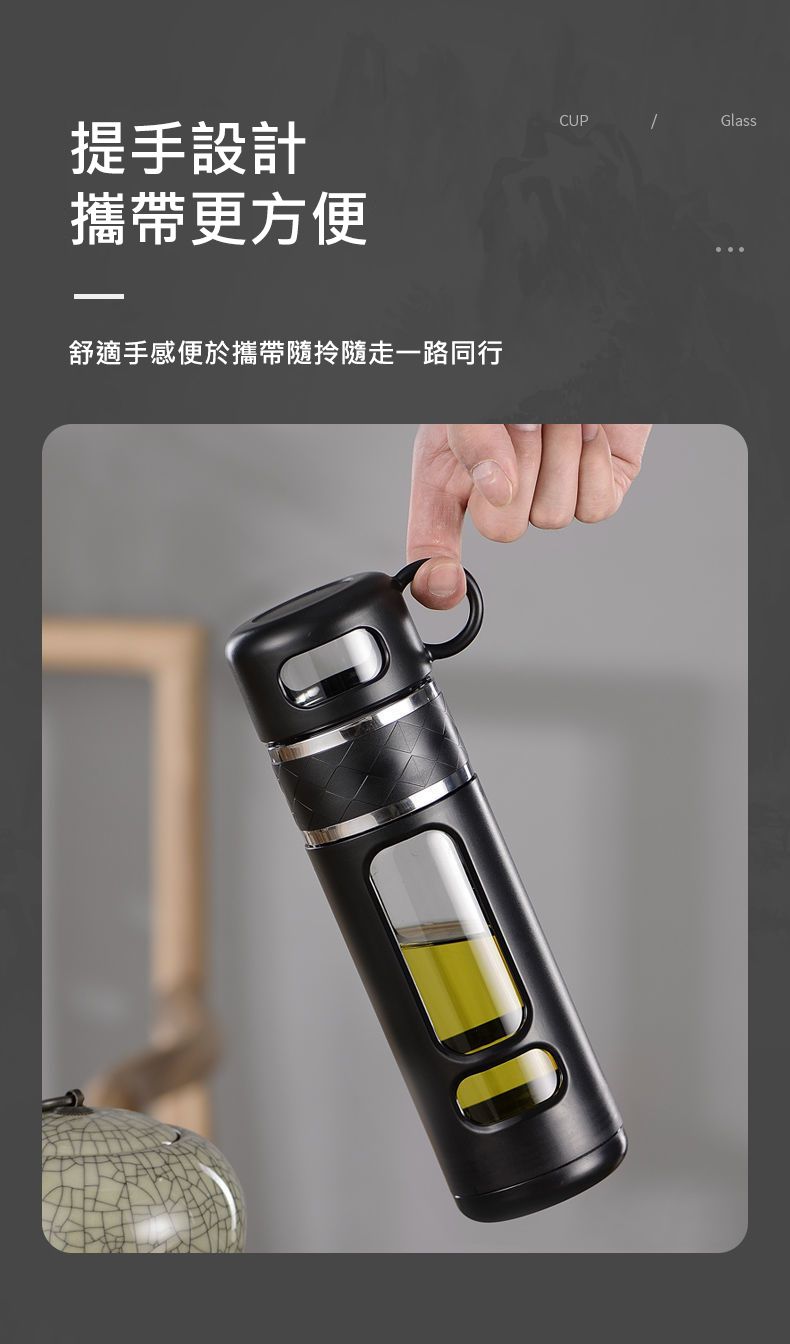 茶水分離隔熱帶手柄水杯【黑色】+【咖色】各一組(優惠400,每組均價798元!)